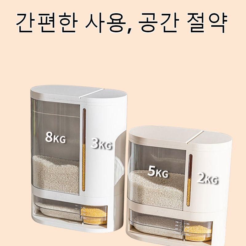 밀가루와 쌀을 동시에 보관 가능한 대용량 쌀통 보관함, 위생적인 밀폐 구조, 간편한 사용, 공간 절약, 대용량 수납으로 주방 정리 효율적